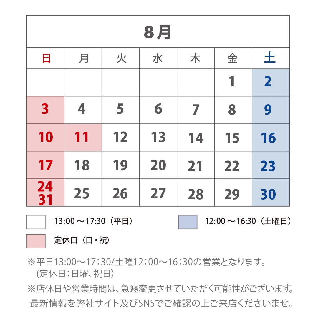 また、8月いっぱいまで土曜営業も行っておりますので、みなさまのご来店お待ちしております。