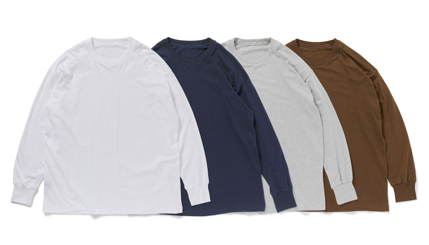 おかげさまで多くの再販リクエストを頂戴しておりましたビッグロングスリーブTシャツを、弊社オンラインショップ限定で再販売いたします。今回、再製作したのは白、紺、杢グレー、チョコレートの計4色です。