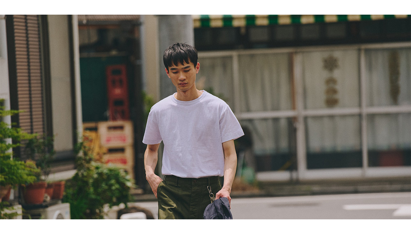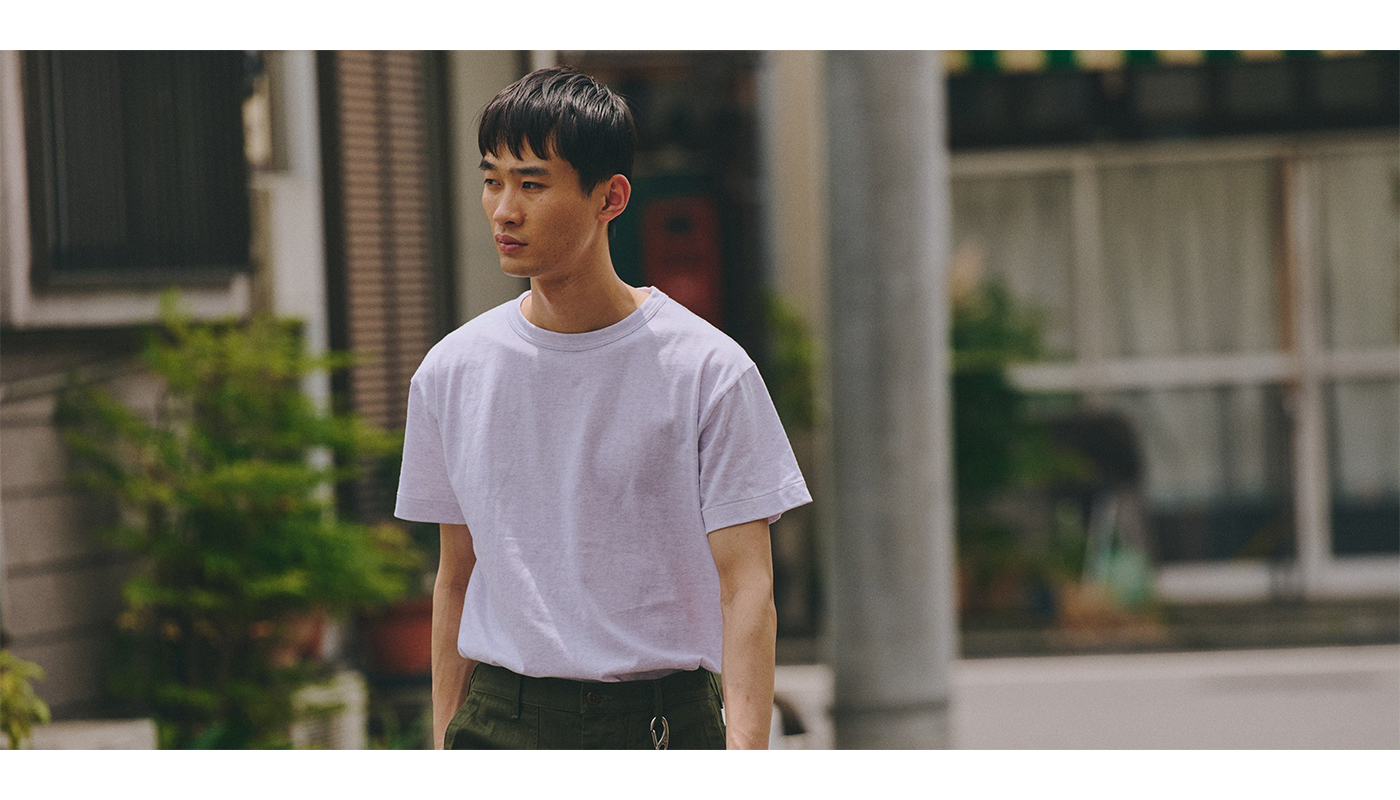 ほどよく波打つクラフト感の衿元が特徴的な02Tシャツに