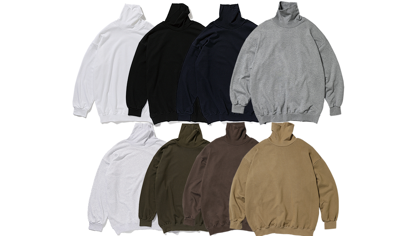 おかげさまで多くの再販リクエストを頂戴しておりました『ビッグタートルネックスウェット』を、弊社オンラインショップ限定で、4色ずつ2回に分けて再販売いたします。