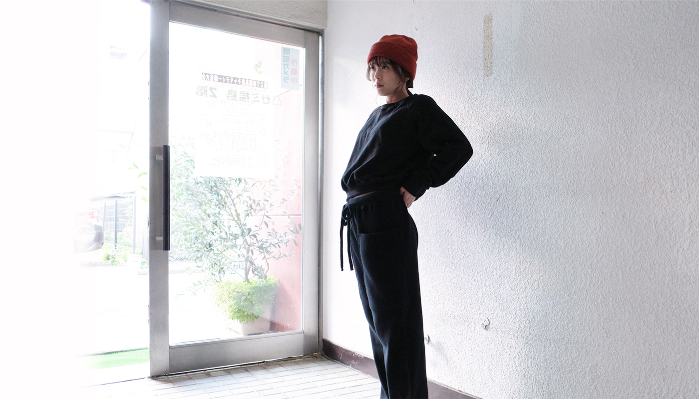 シンプルで短すぎないクロップド丈のトレーナーは着てみると、いつもと違うシルエットに。