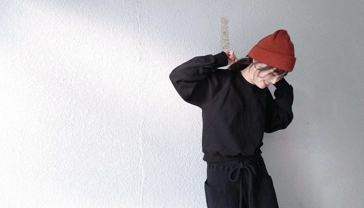 上にはおったコートを脱ぐこの季節、丈が短めのクロップド丈トレーナーはいかがでしょうか。